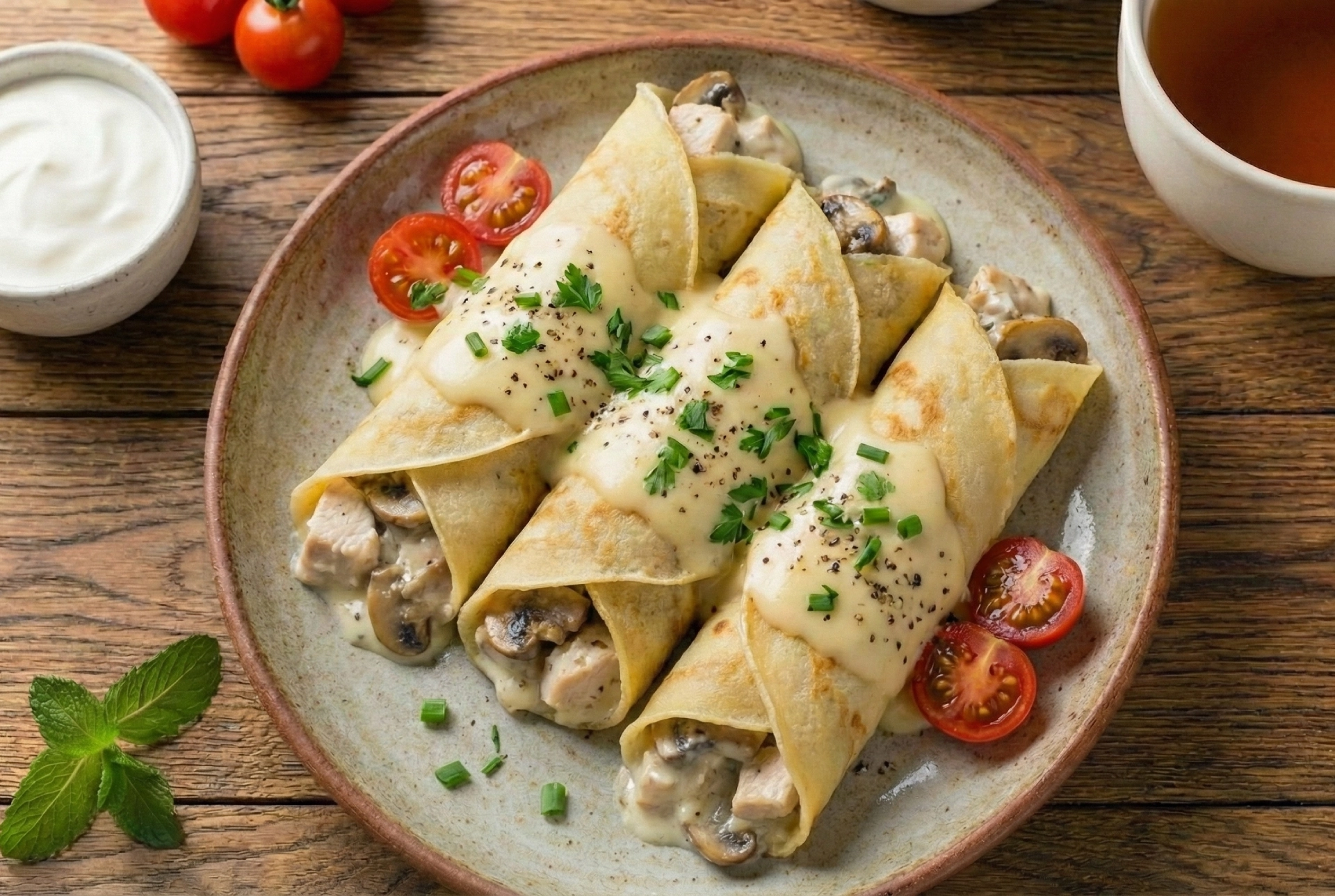 naleśniki z kurczakiem i pieczarkami – Klasyczne, Syte Połączenie
