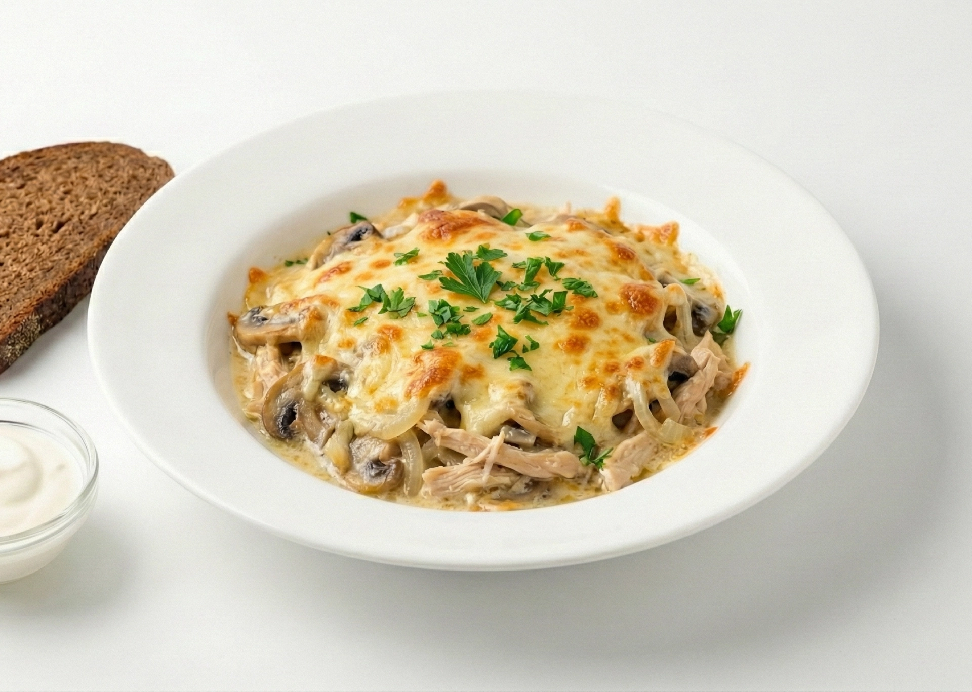 Żulien z kurczakiem i pieczarkami – Kremowa klasyka